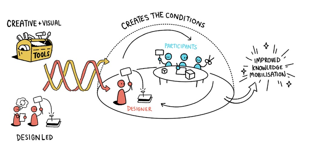 In our paper, we identify a virtuous cycle between the three themes identified that help get knowledge, in all its forms, into practice. The three themes are: creative and visual, design led, and creating the right conditions. Removing any element from the themes results in sub-optimal conditions for co-production.