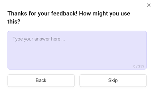 We ran four small trials to identify what microsurvey configurations get the most responses. We experimented with 1) question wording, 2) pop-up timing, 3) number of clicks and 4) the best combination of design elements.